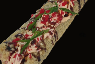Сыр, огурец, краб, спайси соус, масаго.
